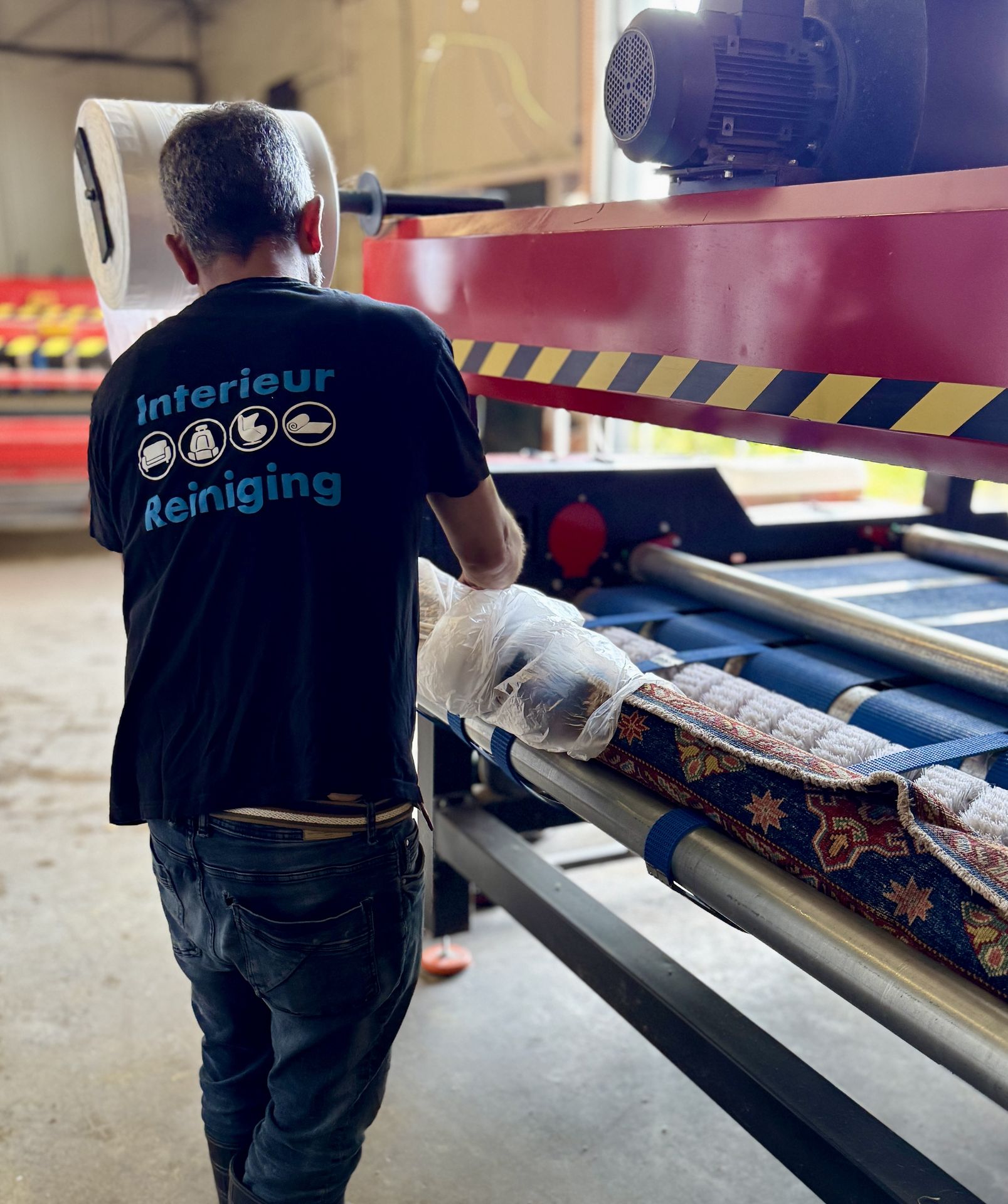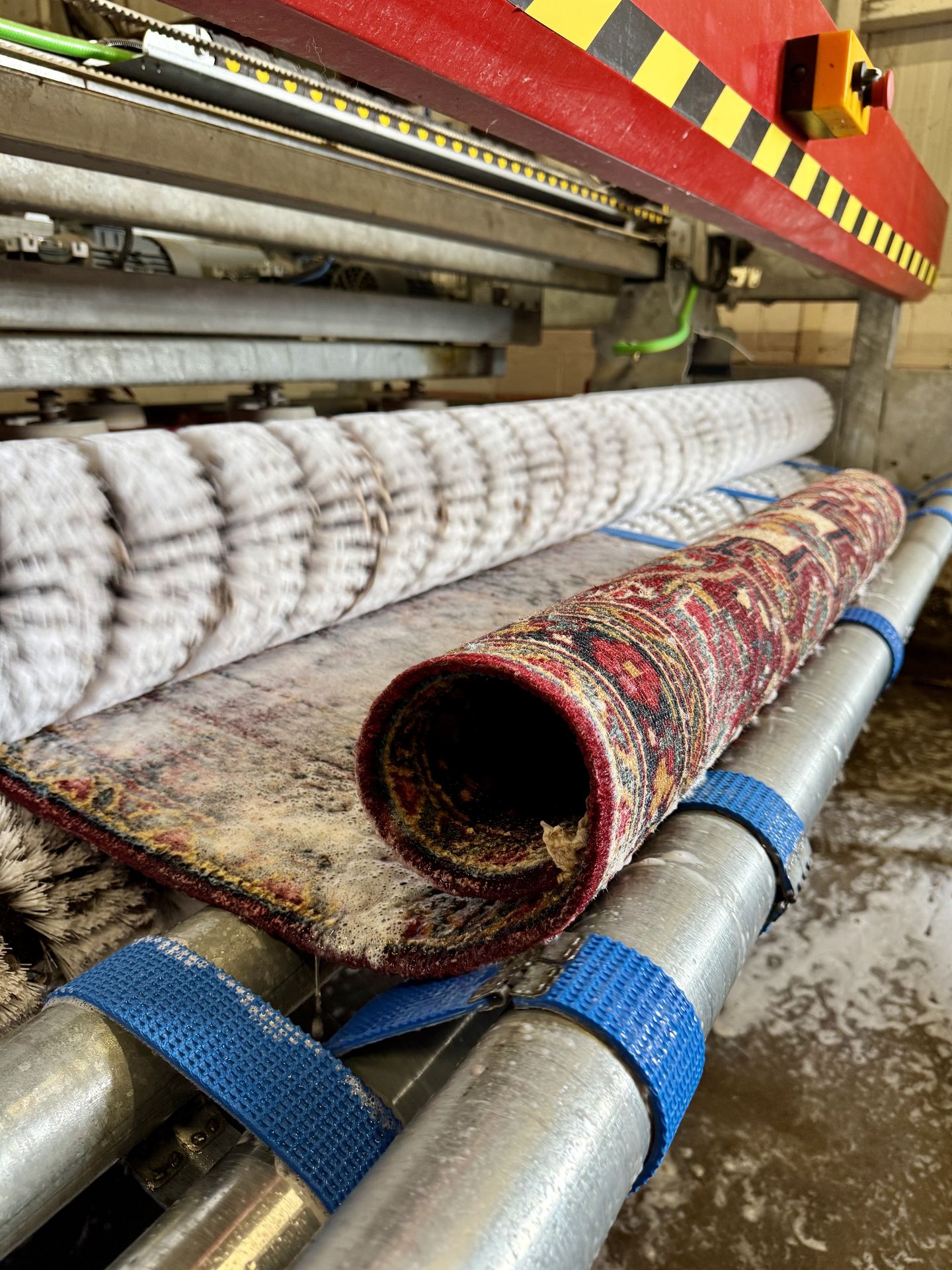 Specifiek ontworpen machines nemen de reinigingstaak op zich om het tapijt zorgvuldig te borstelen. De borstels borstelen tot diep in de vezels alle soorten vervuiling los, vervolgens wordt het tapijt volledig gespoeld zodat alle vervuiling verwijderd is.